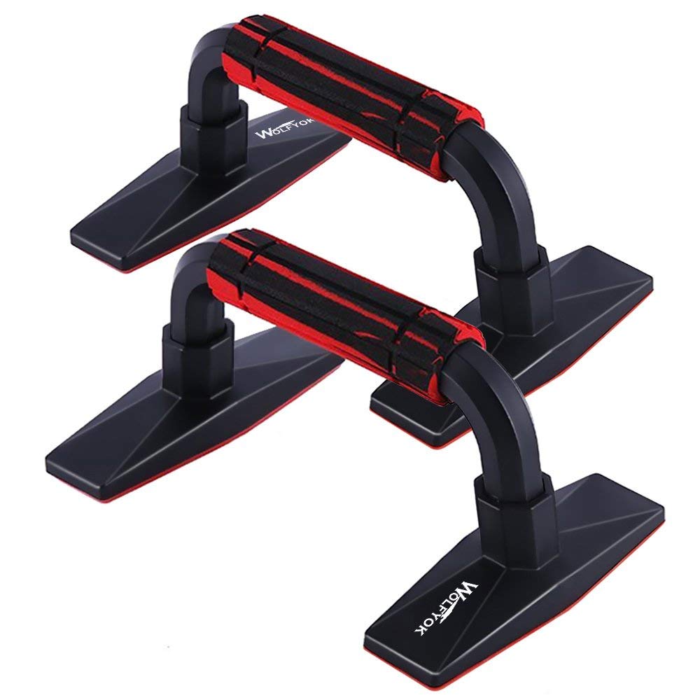 プッシュアップバー Wolfyok 【第ニ世代強化版】 腕立て伏せ 器具 プッシュアップ 筋力トレーニング 筋力アップ 肉体改造 ダイエット 軽量 安定性アップ 滑り止めラバー付きズローラー 取り付け簡単 マット付き 自宅用 ブラック