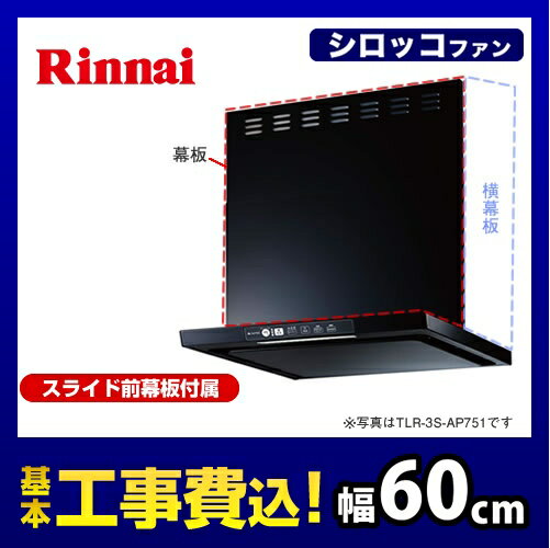【楽天リフォーム認定商品】【お得な工事費込セット(商品+基本工事)】[TLR-3S-AP601-BK] リンナイ レンジフード TLRシリーズ ノンフィルタ・スリム型 幅60cm LED照明 レンジフードファン シロッコファン ブラック 【送料無料】