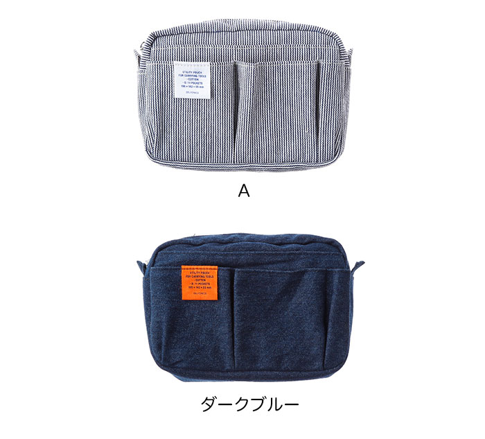 インナーキャリング デニム S (500095)バッグインバッグ ■サイズ:横195×縦142×厚み55mm:A6サイズ ■素材:コットン ■11ポケット ■カラー:デニムAタイプ、ダークブルーの2色 ※生産工程上、色合いが変わる可能性があります。