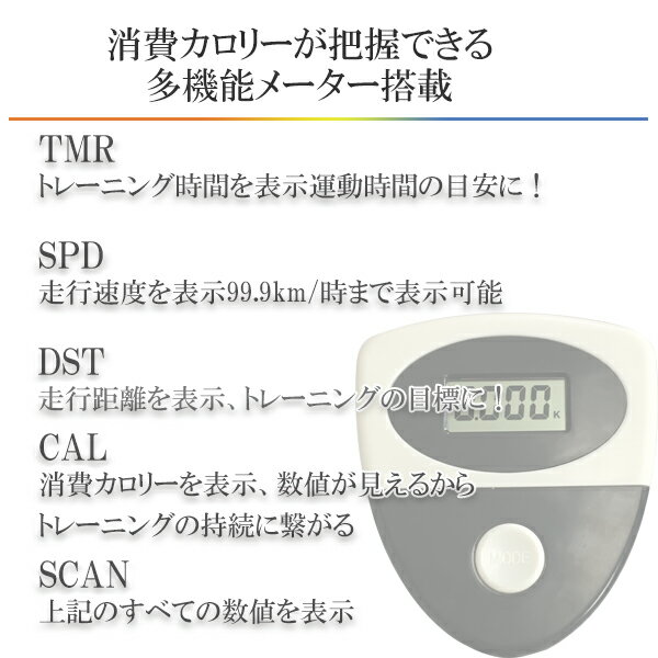 組み立て式のフィットネスバイク!雨の日でも明るく室内で簡単エクササイズ!効果的な有酸素運動ができます付属メーターにはトレーニング時間や走行速度、走行距離、カロリーを表示できる!【商品詳細】サイズ(約):幅62×奥行き41×高さ100cm重量(約):10.5kg耐荷重(約):100Kg材質:ABS、PP、スチール負荷方式:ベルト式付属品:レンチ、六角レンチ×2【代引きについて】こちらの商品は、代引きでの出荷は受け付けておりません。